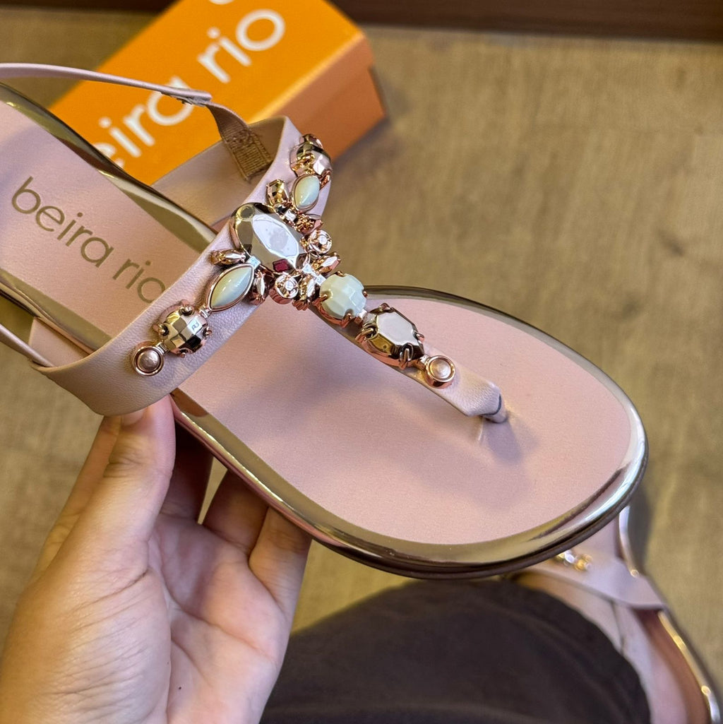 A Rasteira Beira Rio Encanto de Pedras 8367.631 combina sofisticação e conforto em um design elegante. Seu cabedal em material sintético traz aplicação de pedrarias delicadas, que conferem brilho e charme ao visual. O modelo conta com tira elástica no calcanhar para melhor ajuste e palmilha macia que garante conforto durante todo o dia. Ideal para compor looks casuais e elegantes com um toque de glamour.