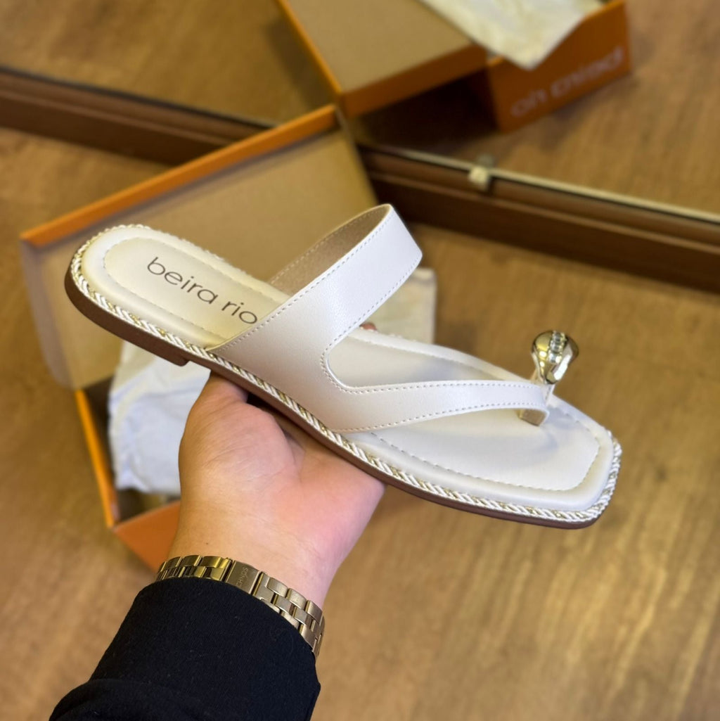 A Sandália Beira Rio Rasteira traz charme e conforto em um só modelo. Com design minimalista e um delicado detalhe dourado no dedo, ela adiciona um toque sofisticado ao visual, sem perder a leveza que uma boa rasteirinha deve ter.