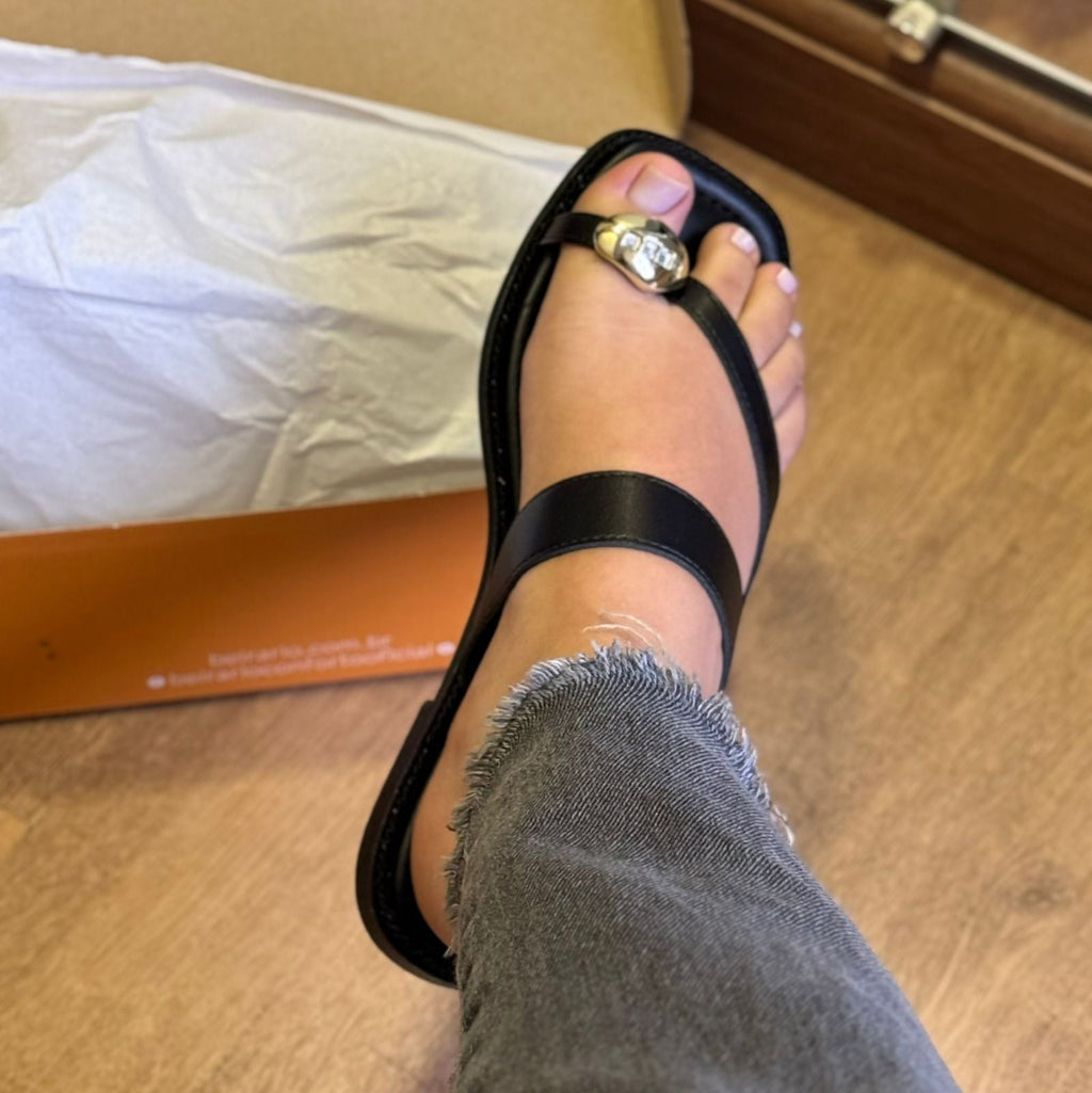A palmilha macia garante bem-estar em cada passo, enquanto as tiras finas proporcionam ajuste seguro e estiloso. Perfeita para compor looks casuais com um toque de brilho na medida certa!