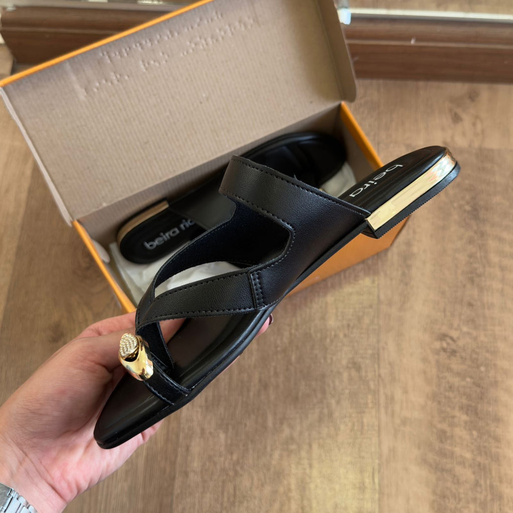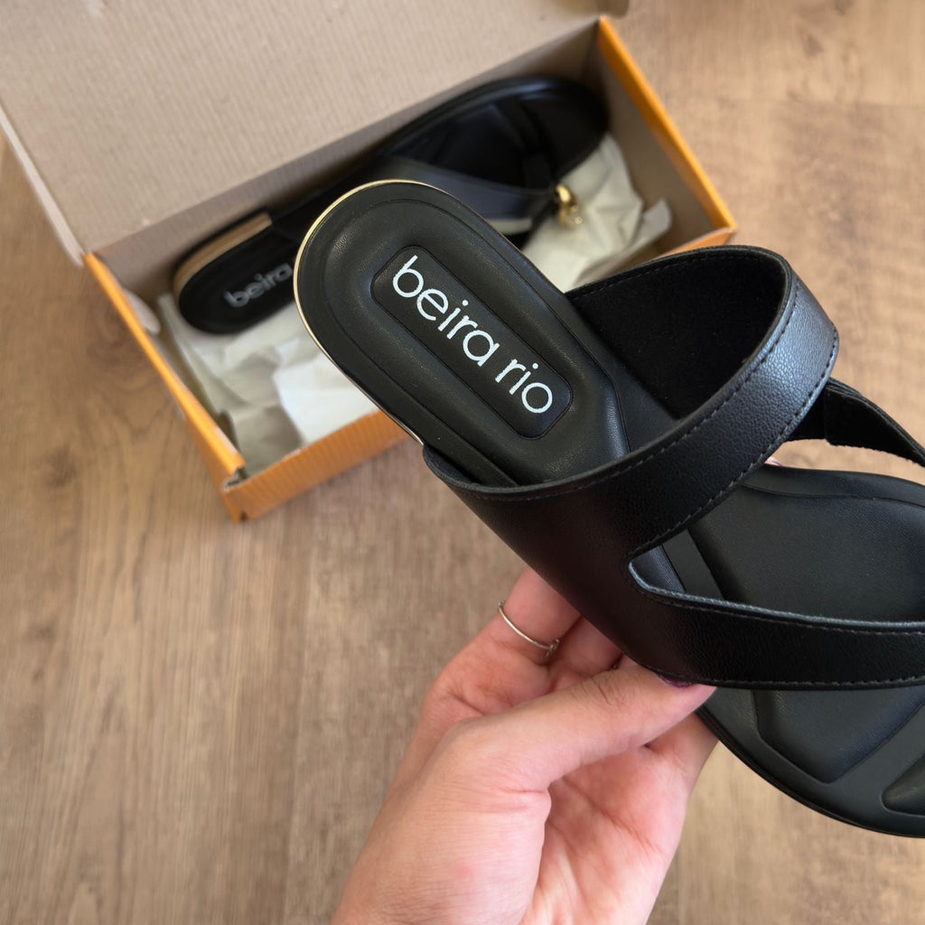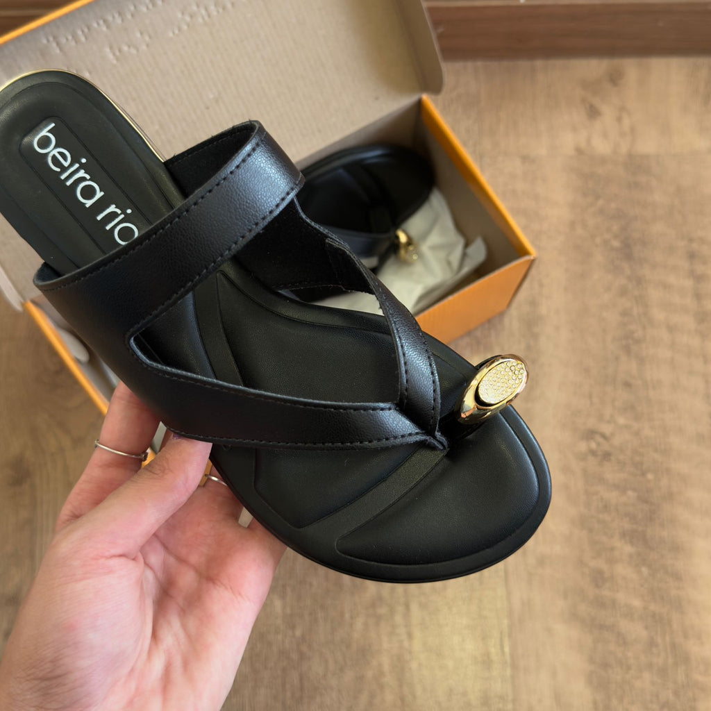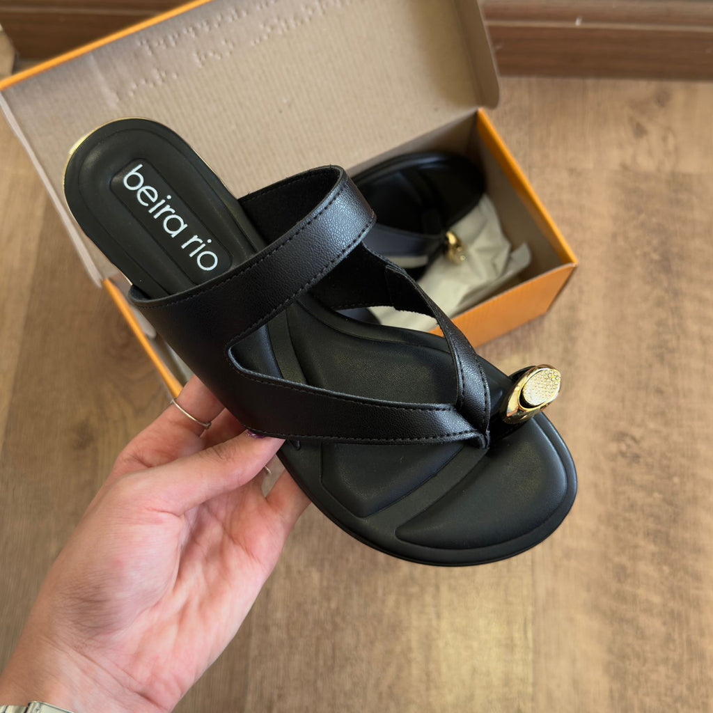 Sandália rasteirinha Beira Rio com acabamento sofisticado em dourado. O Modelo combina conforto e elegância para o dia a dia, apresentando detalhes que elevam qualquer visual casual. A construção cuidadosa garante durabilidade e suporte adequado aos pés. Ideal para quem busca uma opção versátil que transita entre o conforto e o estilo refinado.