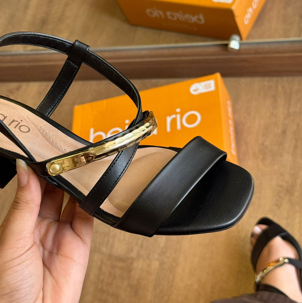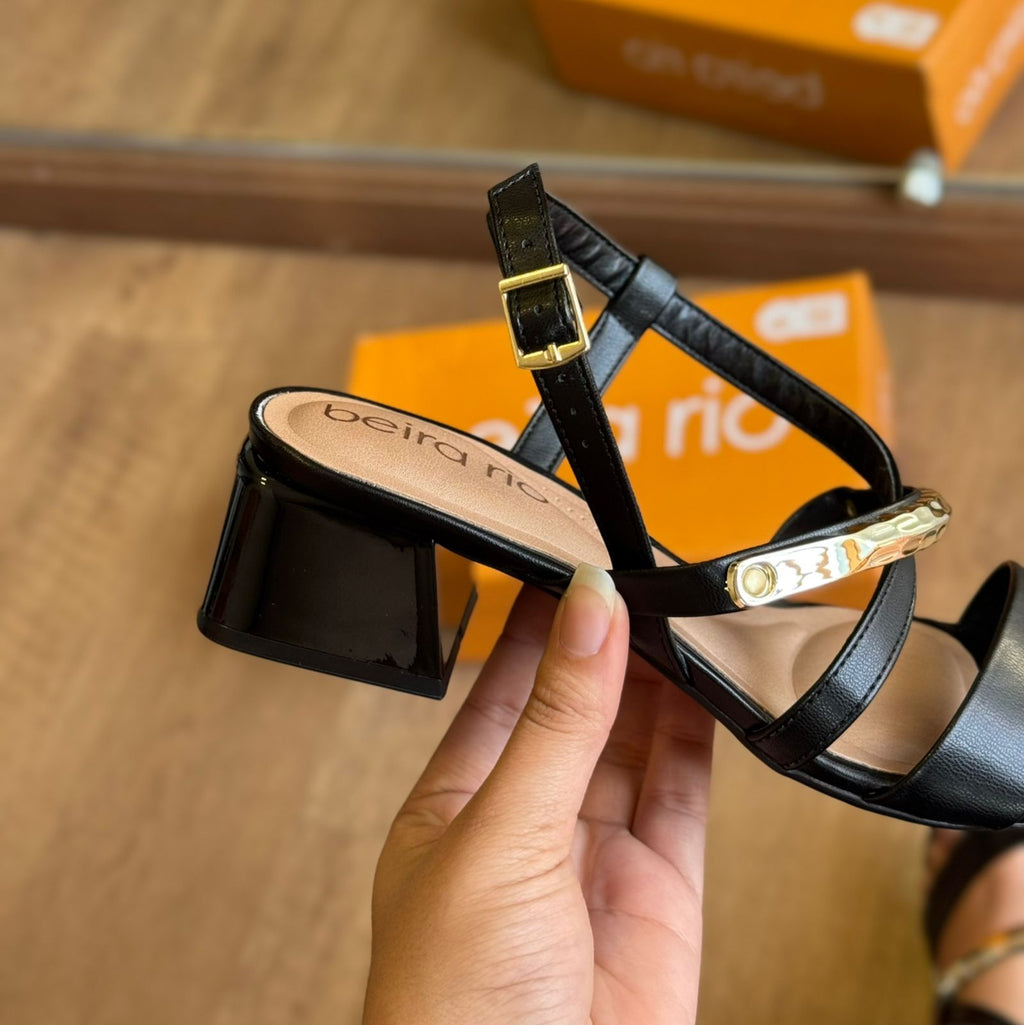A Sandália Beira Rio Salto Bloco Tiras com Detalhe Dourado é a escolha perfeita para quem busca unir estilo e conforto. Confeccionada em material de alta qualidade, conta com tiras cruzadas modernas e aplicação de detalhe metálico dourado, que adiciona um toque sofisticado ao visual. O salto bloco médio garante estabilidade, enquanto o fechamento por fivela ajustável oferece segurança e praticidade. Ideal para compor produções elegantes e versáteis para diversas ocasiões.
